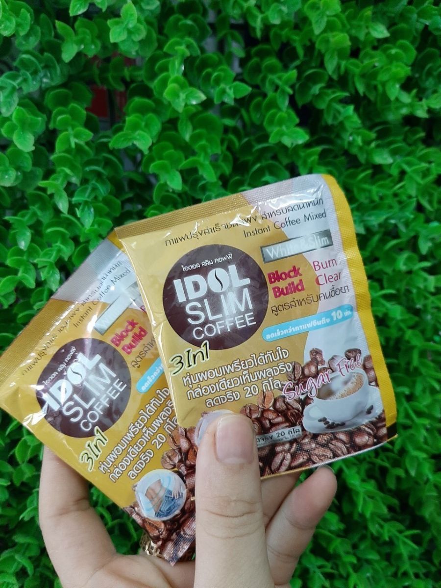 🌸Thành phần Idol Slim Coffee Thái Lan được chiết xuất 100% từ các dược liệu thiên nhiên gồm : cafe hạt hỗ trợ giảm cân, đậu thân trắng giúp đốt cháy mỡ thừa, collagen thực vật, đường thực vật không chất béo, không gây tiểu đường