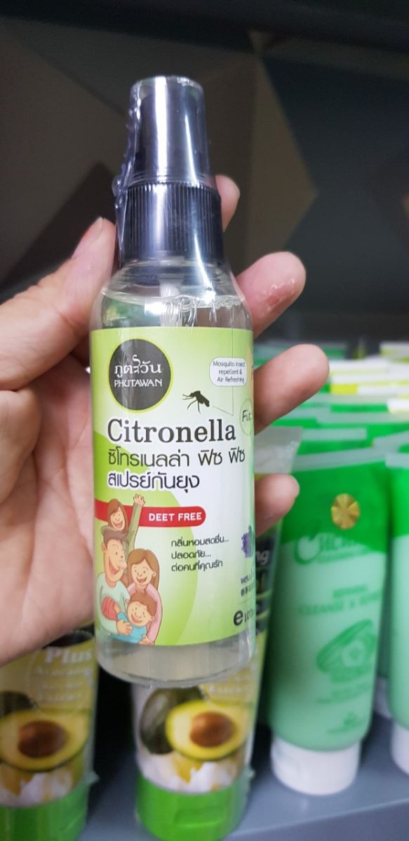 - Xịt chống muỗi Phutawan có mùi thơm thảo mộc, hoàn toàn không chứa Deet như các loại xịt muỗi thông thường nhé. (deet là hóa chất sử dụng trong các sản phẩm chống muỗi, có tác dụng đuổi muỗi thật, nhưng sử dụng trực tiếp & nhiều cho bé thì vẫn không tốt, loại này thì free deet hoàn toàn)